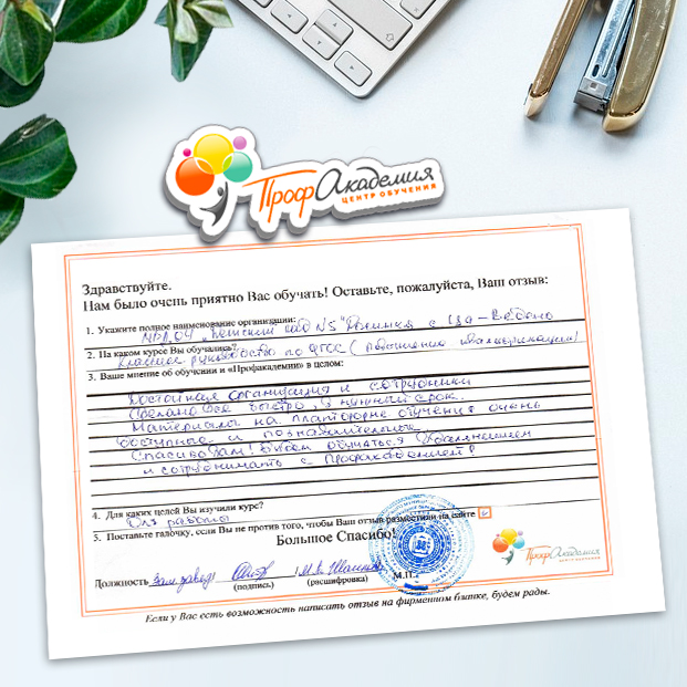 Достойная организация и сотрудники Сделано все быстро , в нужный срок. Материалы на платформе обучения очень доступные и познавательные. Спасибо вам! Будем обучаться в дальнейшем и сотрудничать с Профакадемией!